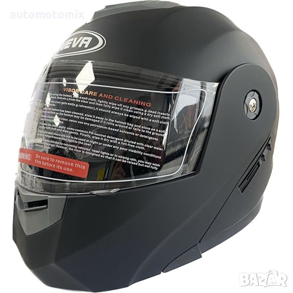 Каска за мотор, Черно/ бяла лента, Мат
