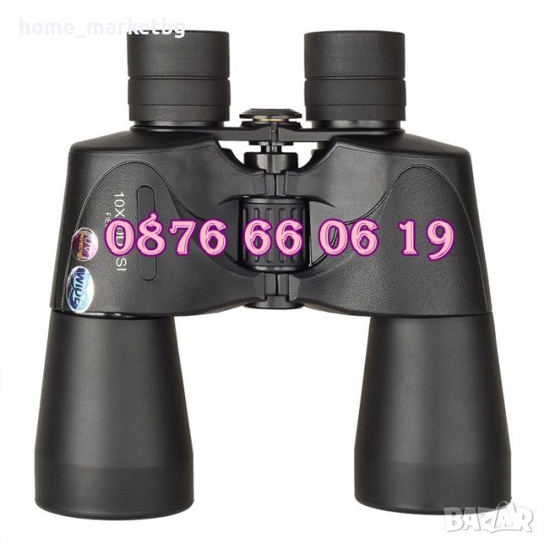 туристически бинокъл 10x50 за лов риболов с UV защита, просветление на лещите, голям зрителен ъгъл от 65° широко зрително поле с гумирано покритие, което предпазва от случайни наранявания, удари и изпускания за къмпинг, туризъм, лов, риболов, деца, концерт, зали, спорт, планина, море, екскурзии, наблюдение на птици, гълъби или други животни