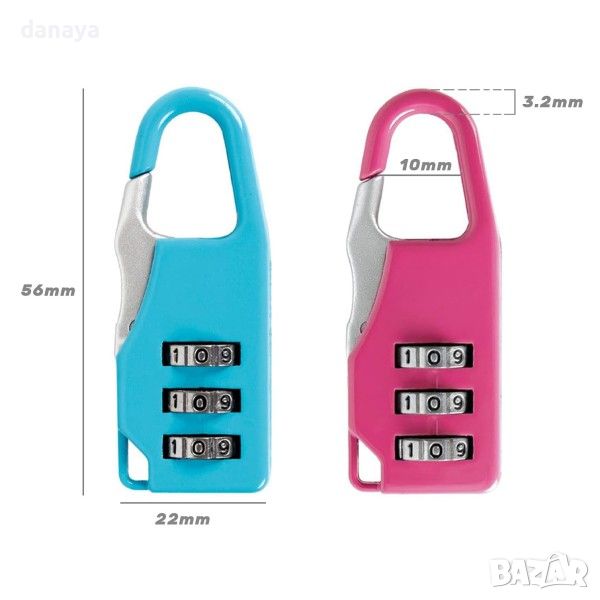 Катинар за куфар с шифър. Малко катинарче за куфар с 3 цифрен код за заключване. Катинар за багаж с шифър, с 3 отделения за цифрови комбинации. Запазва багажа надеждно затворен по време на транспорт. Изработен от здрава цинкова сплав и неръждаема стомана за най-голяма сигурност.