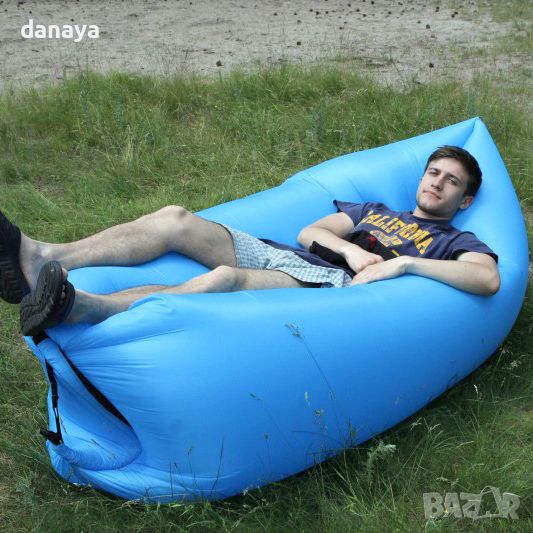 шезлонг. Самонадуваемо въздушно легло, кресло дюшек, барбарон. Този надуваем парашутен барбарон е подходящ за къмпинг, плаж, пикник. Много удобно кресло, което е компактно, лесно преносимо легло, надува се с няколко загребвания във въздуха, без да използвате помпа. Може да го пренасяте и използвате навсякъде с вас, благодарение на малка торбичка с презрамка.