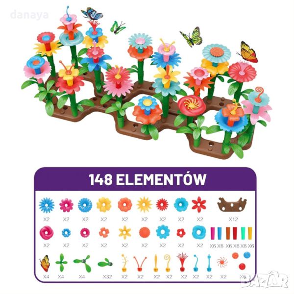 Интерактивна детска играчка конструктор. Игра за сглобяване на цветя. Уникален конструктор от 148 броя части за сглобяване подходящ за всяка принцеса над 3 години.