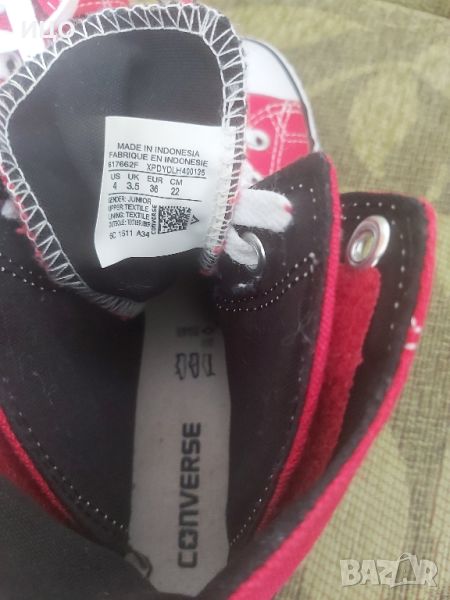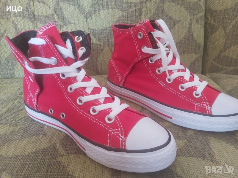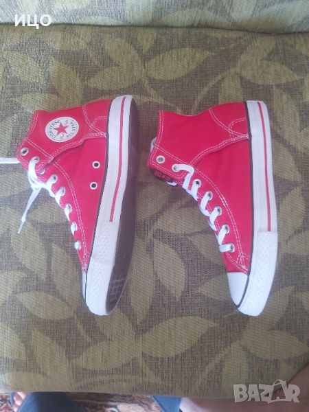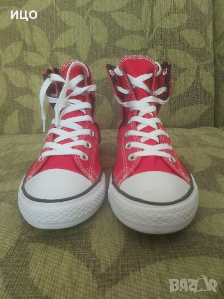 Състояние отлично на високите кецове Converse. Със велкро лепенки отстрани на вътрешната част. Дължина на стелката 22см. Номер 36. Цена 55лв.