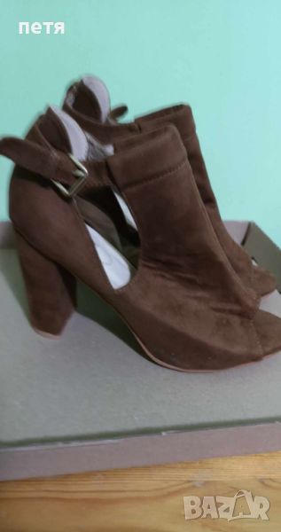 кафяви, велур, височина на тока 10 см, вижда се марката