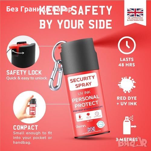 Нов Спрей за самозащита с UV маркиране и 130db аларма за жени защита