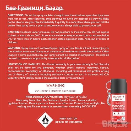 ✅ Достига до 3 метра: Гъст, лепкав червен спрей, който шокира и дезориентира целта, дава време за бягство.