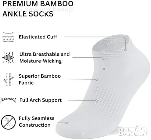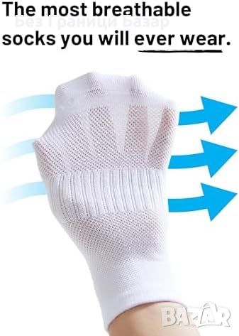 Нови 6 чифта Бели Антибактериални Чорапи до Глезена Спортни и Дишащи
