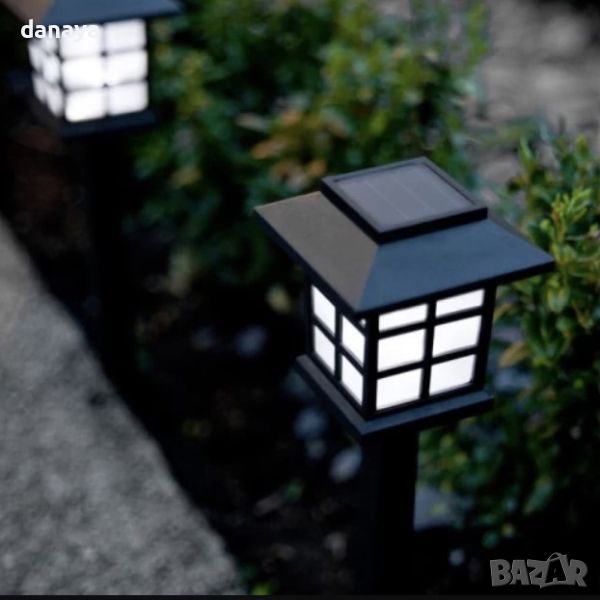 Соларна градинска лампа с форма на малка къщичка. Красива декорация за градината.