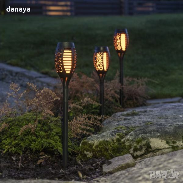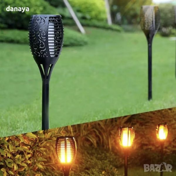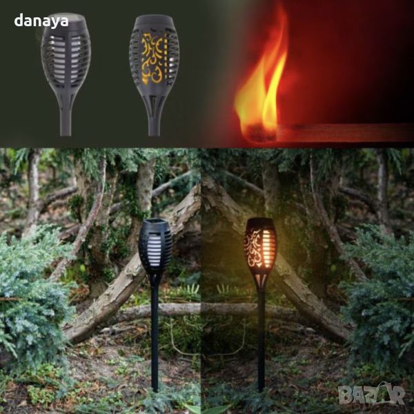 Соларна лампа за градината във формата на факла, имитираща реалистичен огън. Изключително атрактивен начин за декорация на двор и градина. Осигурява романтична и топла атмосфера.