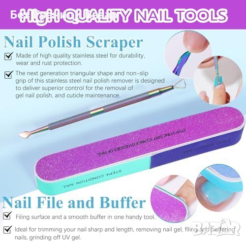 Нов Комплект за премахване на гел лак с буфер и стоманен инструмент
