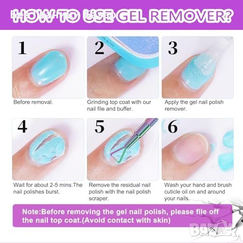 Лесен за използване: Полирайте горния слой, нанесете гел ремувъра и отстранете след 3-5 минути