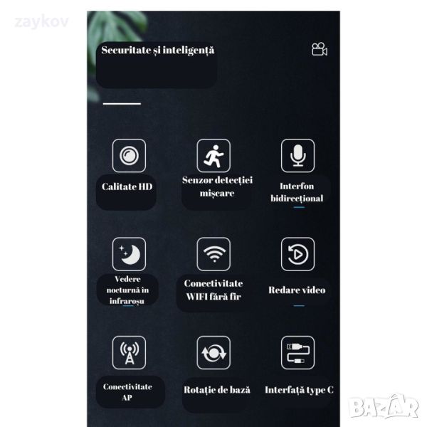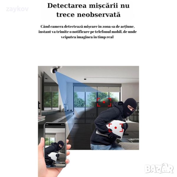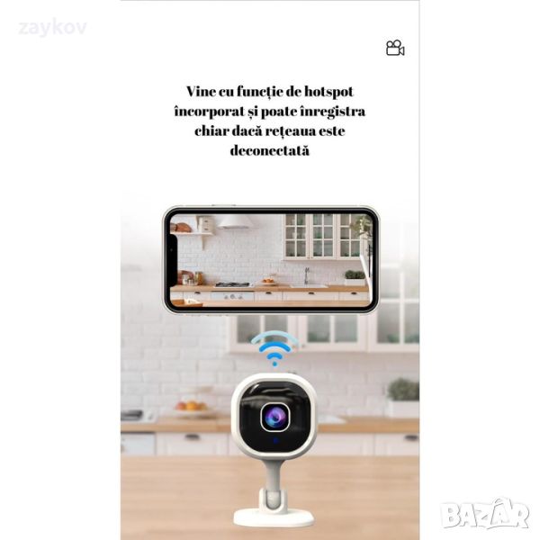 Мини видеокамера за наблюдение, 1080P Ultra-Hd резолюция, WIFI свързаност, инфрачервено нощно виждане, сензор за движение, лицев фокус, аларма чрез известяване по телефона, функция за въртене на камерата, неоткриваем нощен режим