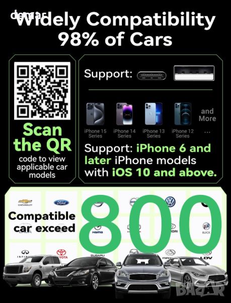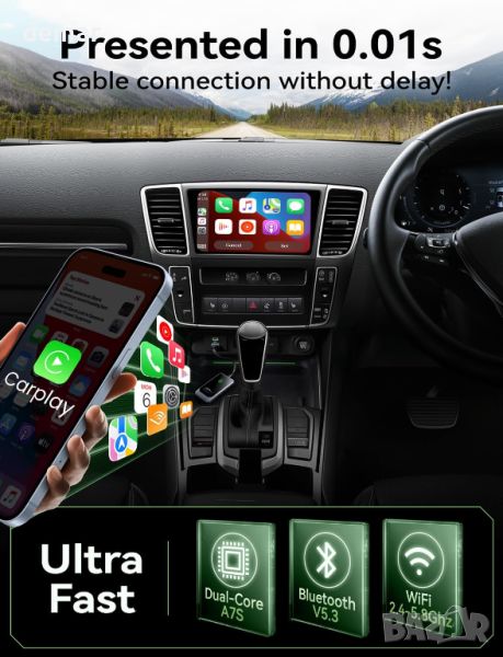 Адаптерът Mavlou Wireless Carplay преобразува кабелния Carplay в безжичен, позволявайки безпроблемна употреба, без да включвате телефона си. Неговият елегантен дизайн, вдъхновен от Cybertruck, включва авиационна алуминиева сплав и 2.5D закалено стъкло за издръжливост и ефективно разсейване на топлината. С 5,8 GHz WiFi, 5,3 Bluetooth и 8-ядрен A7S микрочип, той предлага 40% по-бързи скорости на предаване и изключителна производителност при различни условия. Plug-and-play настройката автоматично се свързва при всяко стартиране и поддържа гласово управление, волан, сензорен екран и операции с копчета. Съвместим с над 800 модела автомобили и iPhone 6 или iOS 10 и по-нови, той подобрява изживяването ви при шофиране с надеждна свързаност и лекота на използване.