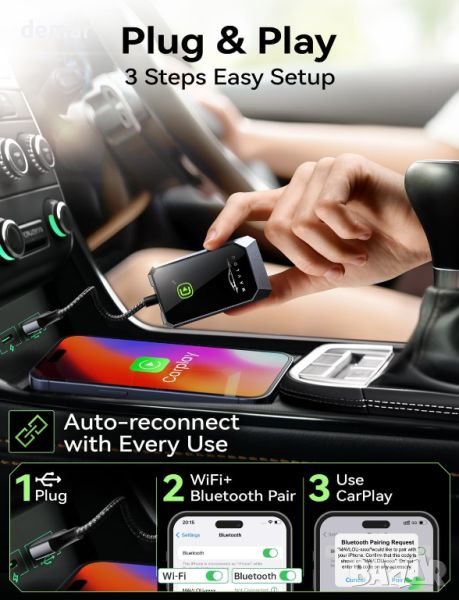 Безжичен адаптер Carplay за Apple, Carplay преобразува кабелен в безжичен CarPlay Dongle