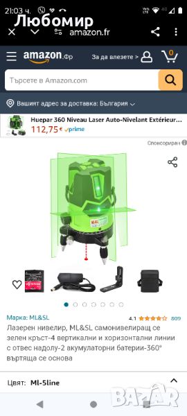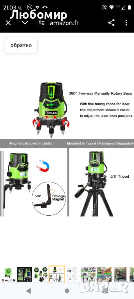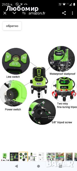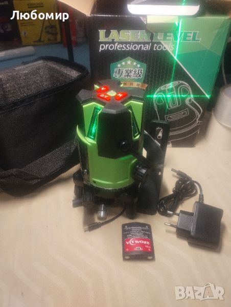 Лазерен нивелир самонивелиращ се зелен кръст-4 вертикални и хоризонтални линии с отвес н