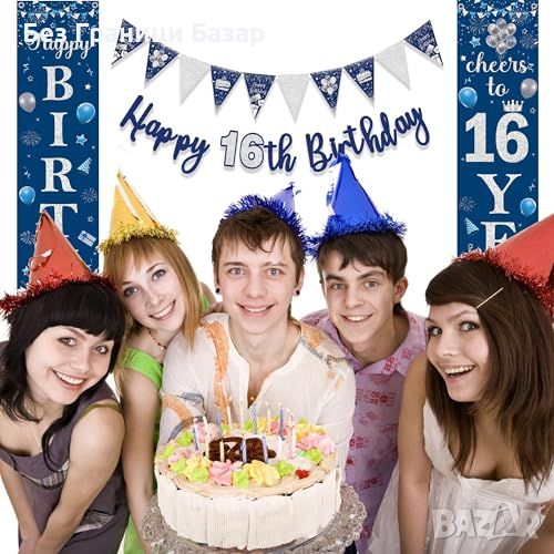 Нови Сини и Сребърни Декорации за 16-ти Рожден Ден - Парти Комплект украса