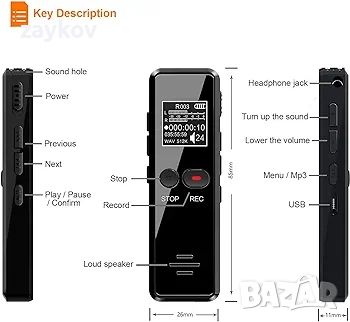 Отлично качество на запис: ясен запис и два микрофона с динамично намаляване на шума, различен битрейт, по-висок битрейт, по-високо качество на запис, кристално чисти записи и MP3 плейъри.