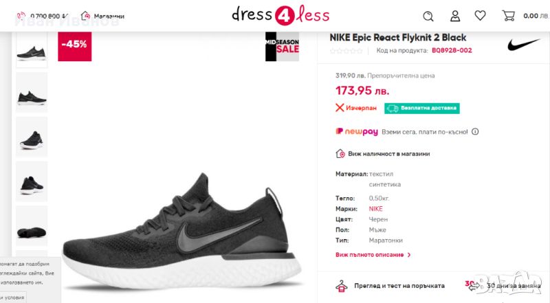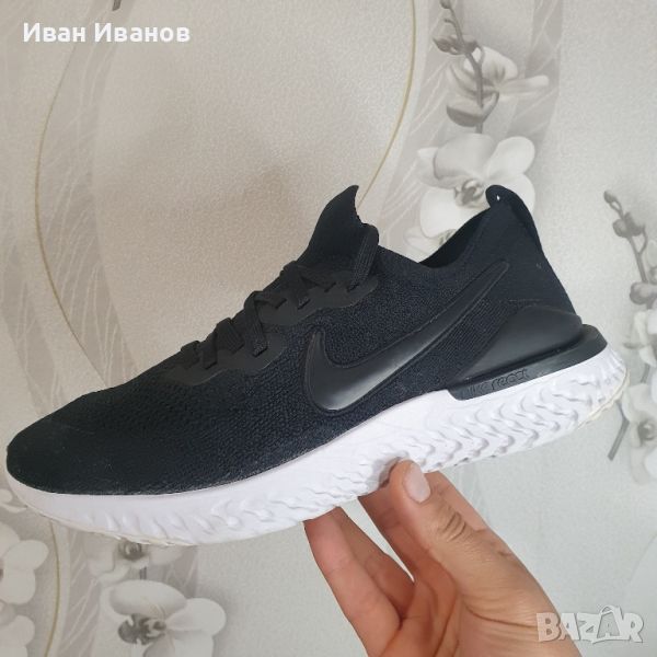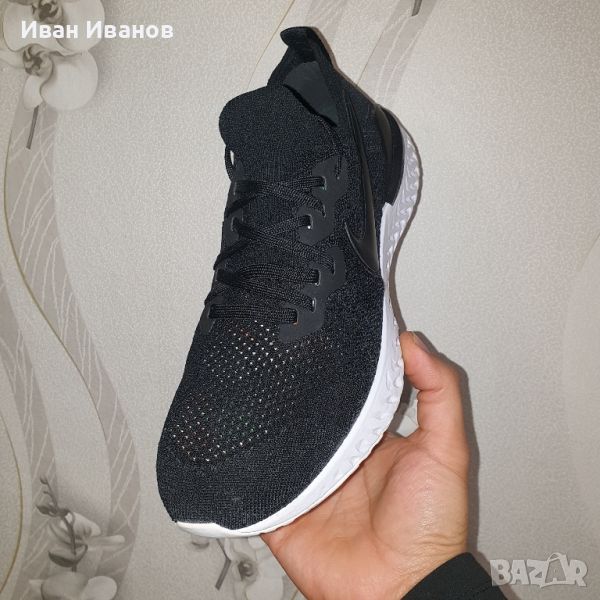 Маратонки Nike EPIC REACT FLYKNIT 2 номер 43,5Много малко използвани , с минимални следи по подметката . Външно като нови . Много леки , красиви и удобни Цена по магазините около 300 лева Nike Epic React Flyknit 2 прави крачка напред от своя предшественик с гладко, леко представяне и смел външен вид. Актуализираната горна част от Flyknit пасва на вашия крак с минимален, поддържащ дизайн. Под краката, издръжливата технология Nike React се противопоставя на шансовете, като е едновременно мека и отзивчива, за комфорт, който продължава, докато можете да бягате.Страхотни мъжки маратонки Nike в черен цвят с контрастни сини детайли, изработени от висококачествени материали. Името на марката е пришито отстрани на обувката. Най-леката версия на модела е с Flyknit повърхност и пяната Nike React, използвана за междинната подметка, която приятно амортизира сътресенията. Обувките са перфектния избор както за спорт, така и за ежедневието. Много добре се съчетават с дънки, клин или спортен панталон.