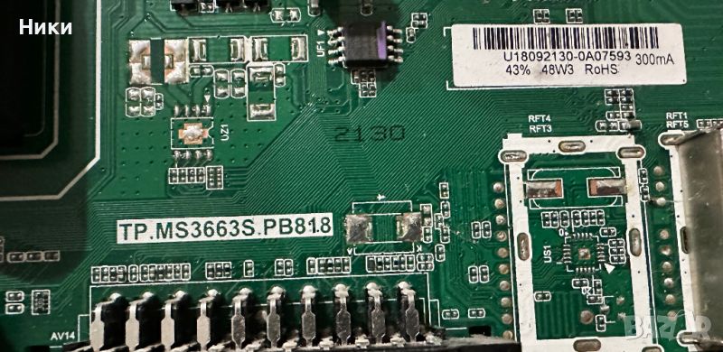 Продавам Main Board TP.MS3663S.PB818 Платката е работеща свалена от работещ телевизор CROWN 32T219със счупен дисплей и модела на дисплея е LMDS315-D19D. Изпращам по ЕКОНТ с опция тест и преглед!!! С оглед и проба на това, че модулите нямат гаранция, след прегледа, теста и заплащането не приемам възражения и ракламации, щото предварително всички платки и модули са тествани и в изправно състояние се пращат!!!