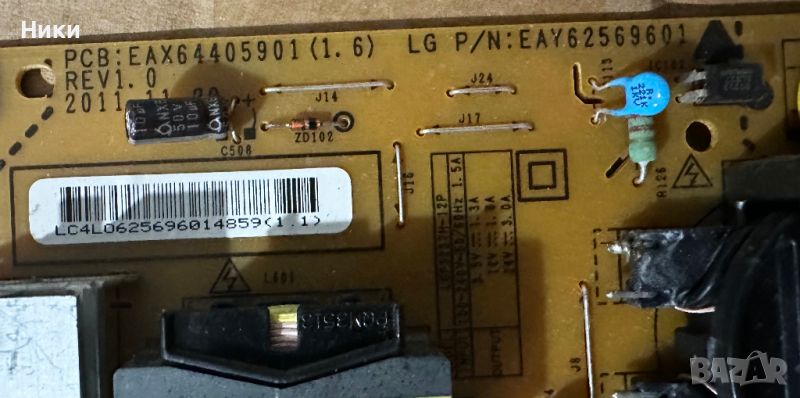 Power Board EAX64405901(1.6) / EAY62569601 / PSLC-L111A / LGP3237H-12P / 3PAGC10079A-R от телевизор LG 37LM620S. Платката е работеща свалена от работещ телевизор със счупен дисплей модел. Изпращам по ЕКОНТ с опция тест и преглед!!! С оглед и проба на това, че модулите нямат гаранция, след прегледа, теста и заплащането не приемам възражения и ракламации, щото предварително всички платки и модули са тествани и в изправно състояние се пращат!!!