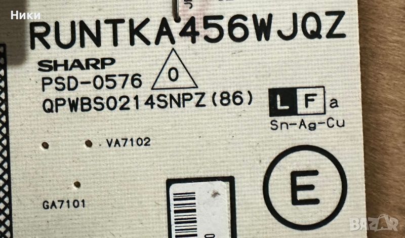 Power inverter RUNTKA456WJQZ / PSD-0576 / PWBS0214SNPZ (86) / KA456WJQZ от телевизор Sharp LC-32D654E Платката е работеща свалена от работещ телевизор със счупен дисплей модел на дисплея. Изпращам по ЕКОНТ с опция тест и преглед!!! С оглед и проба на това, че модулите нямат гаранция, след прегледа, теста и заплащането не приемам възражения и ракламации, щото предварително всички платки и модули са тествани и в изправно състояние се пращат!!!