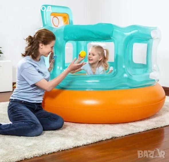 Децата могат да се забавляват в него и с хвърляне на топка, благодарение на 6-те топки за игра, включени в комплекта