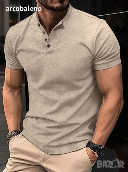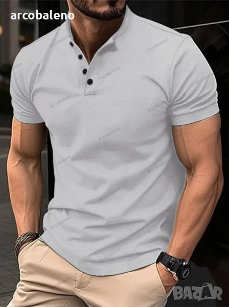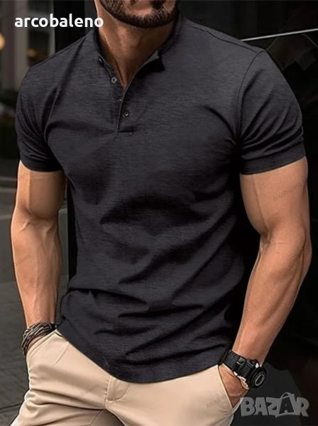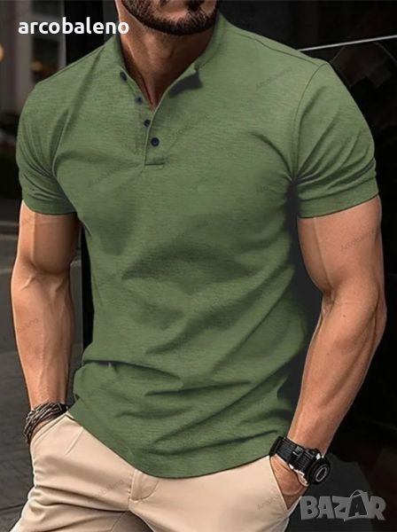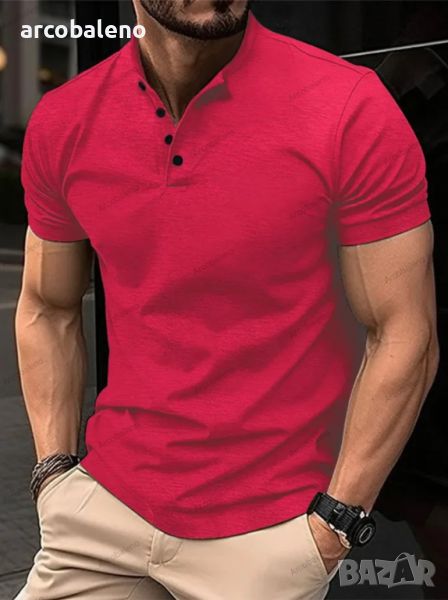 Мъжка тениска с копчета и яка Henley, 5цвята
