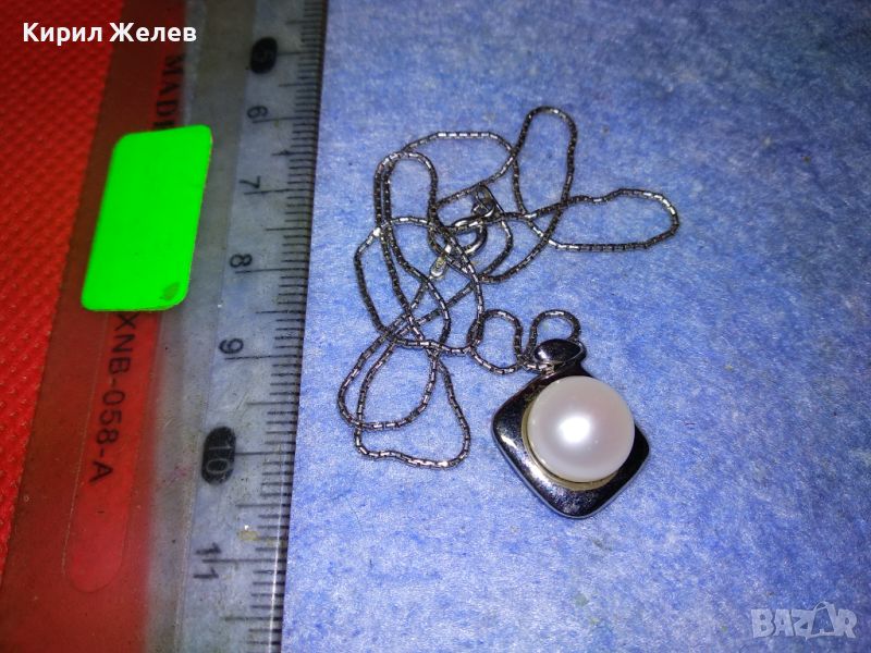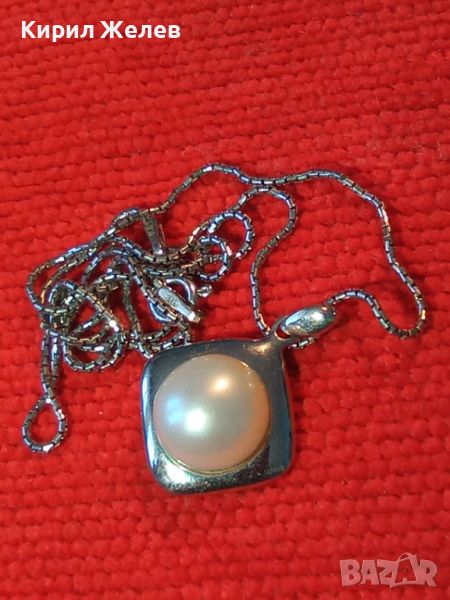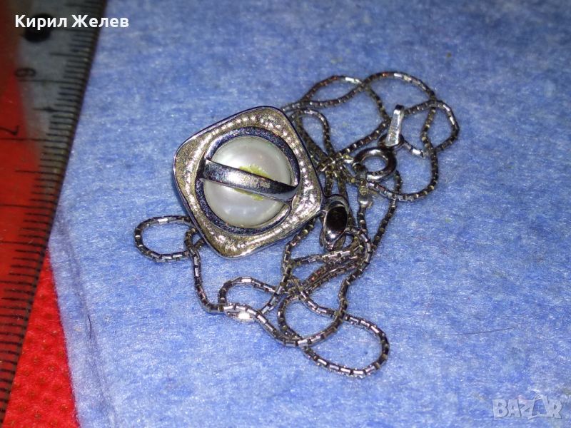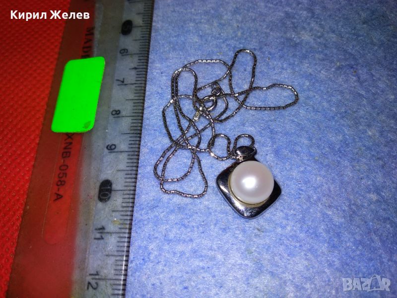 СРЕБЪРНО КОЛИЕ с СРЕБЪРЕН ПЕНДАНТ СРЕБРО 925 YUNO ITALY с БЯЛА ПОЗЛАТА и НАТУРАЛНА БЯЛА ПЕРЛА 44302