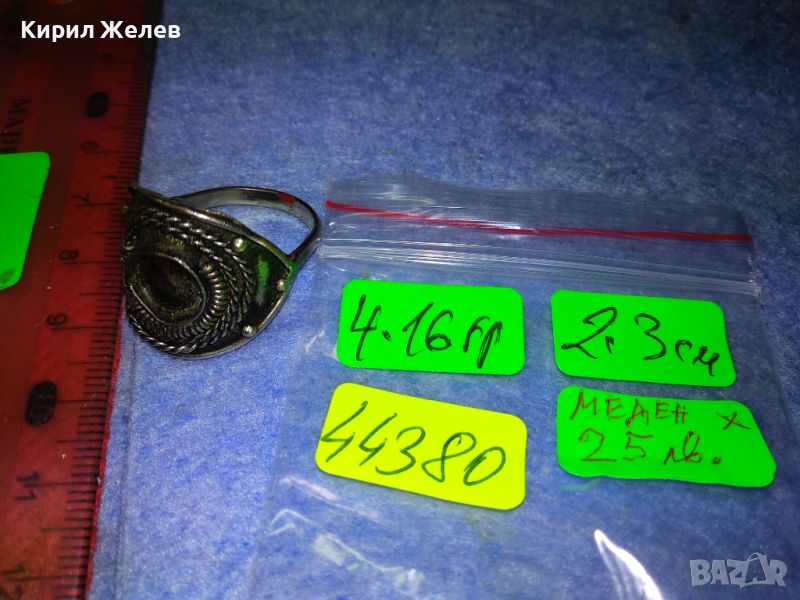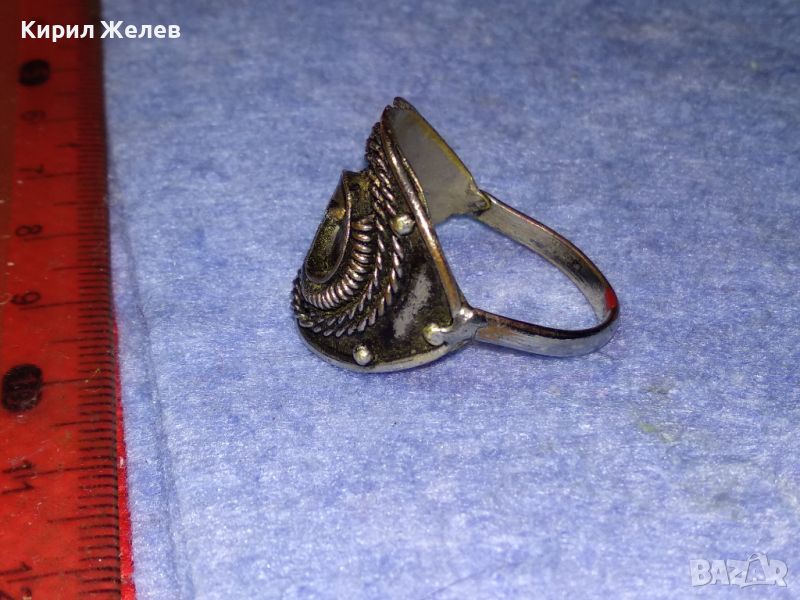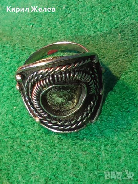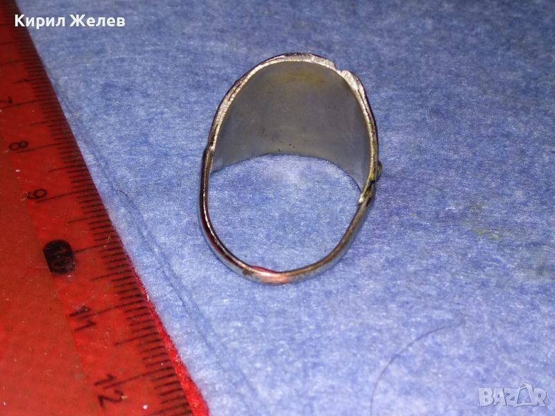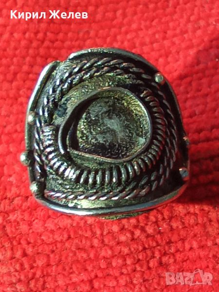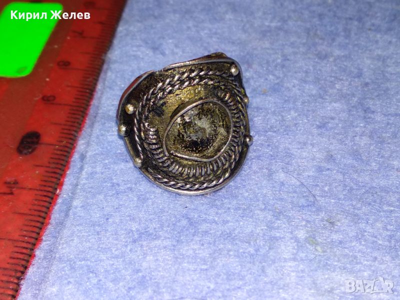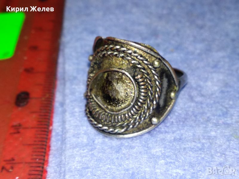 ВЪЗРОЖДЕНСКИ СТИЛ ЛАКИРАН ПОСРЕБРЕН МЕДЕН ПРЪСТЕН с ГНЕЗДО За ВГРАЖДАНЕ на СКЪП КАМЪК 44380