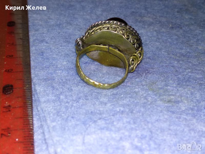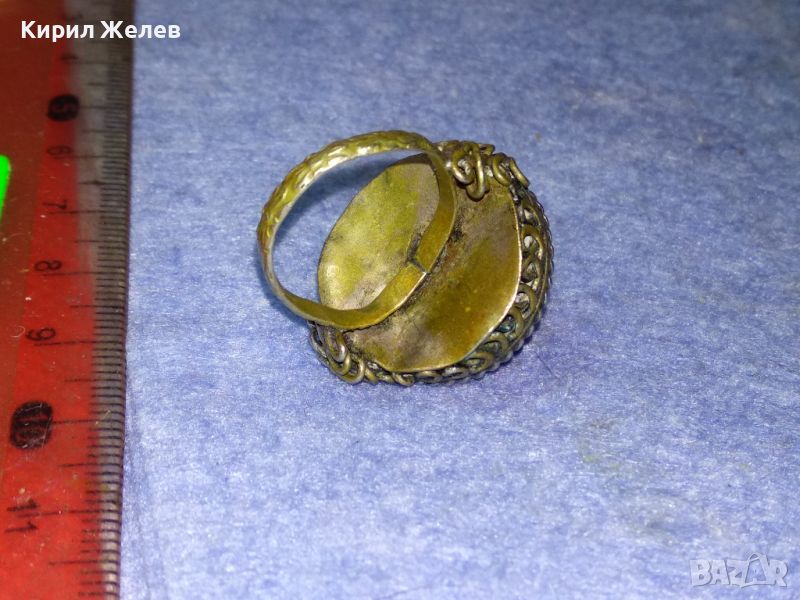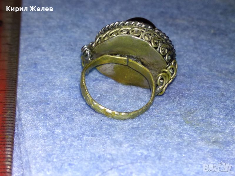 СТАРИНЕН ЕТНОГРАФСКИ ПОСРЕБРЕН БРОНЗОВ / МЕДЕН ПРЪСТЕН РЪЧНА КУЮМДЖИЙСКА ИЗРАБОТКА 44385