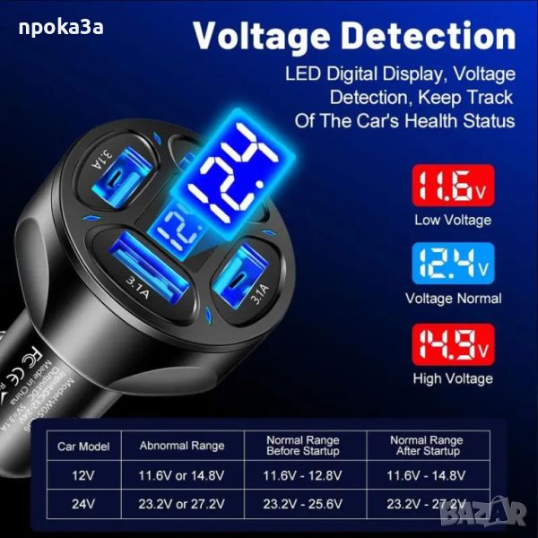2в1 волтметър и четворно зарядно за автомобил, снимка 1 - Аксесоари и консумативи - 45973021 2в1 волтметър и четворно зарядно за автомобил, снимка 2 - Аксесоари и консумативи - 45973021 2в1 волтметър и четворно зарядно за автомобил, снимка 3 - Аксесоари и консумативи - 45973021 2в1 волтметър и четворно зарядно за автомобил, снимка 4 - Аксесоари и консумативи - 45973021 2в1 волтметър и четворно зарядно за автомобил, снимка 5 - Аксесоари и консумативи - 45973021 2в1 волтметър и четворно зарядно за автомобил, снимка 6 - Аксесоари и консумативи - 45973021 2в1 волтметър и четворно зарядно за автомобил, снимка 7 - Аксесоари и консумативи - 45973021 2в1 волтметър и четворно зарядно за автомобил, снимка 8 - Аксесоари и консумативи - 45973021 1/8