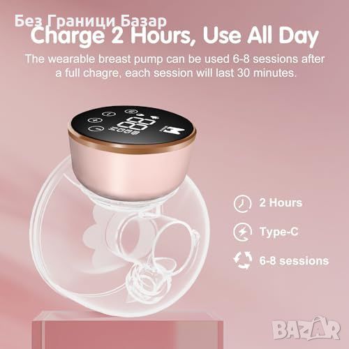 Дълъг живот на батерията: 1200mAh батерия за 6-8 изпомпвания с пълно зареждане за 2 часа.