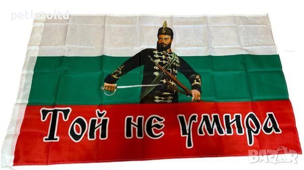 Знаме с образа на Христо Ботев - Той не умира! ГОЛЯМ РАЗМЕР 86 см Х 140 см → Обява 45973365