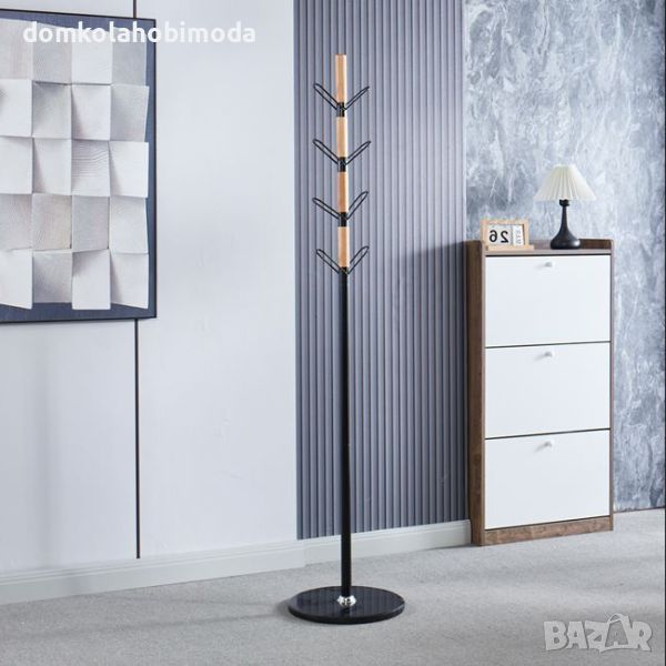 Подова закачалка - от метал и дърво (MDF) и 8 кукички на 4 височини. Има кръгла мраморна основа Ø37см.