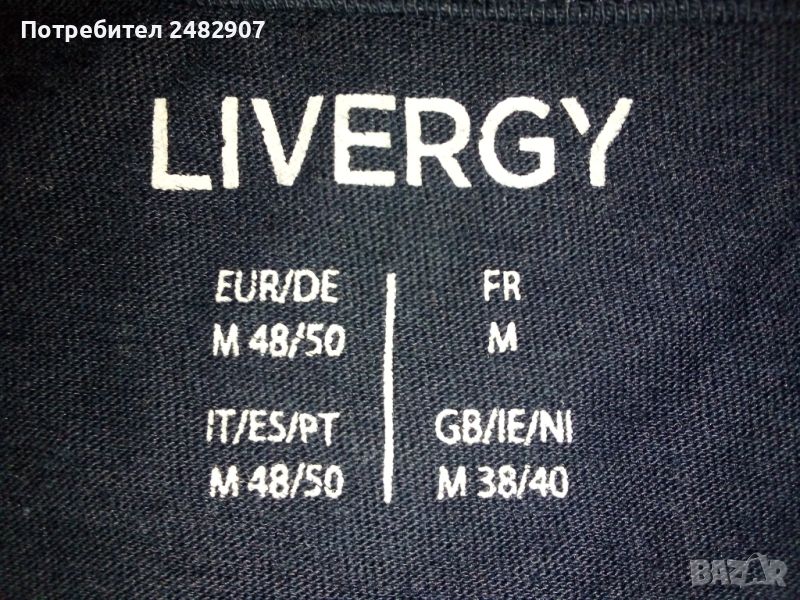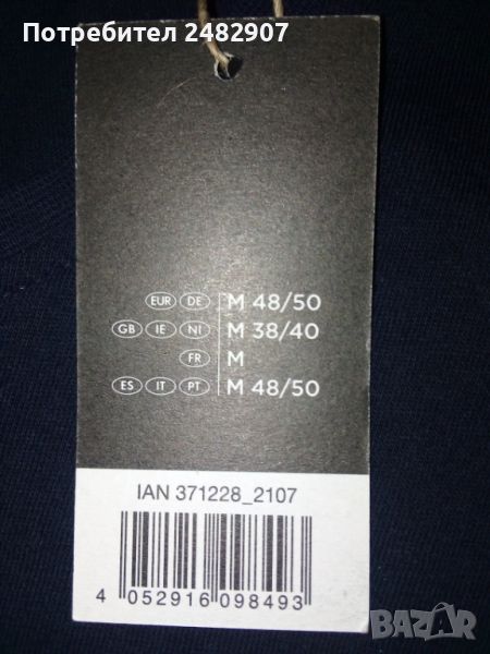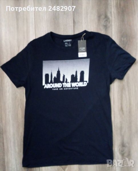 Тъмносиня мъжка тениска, размер М. Съдържа 100 % памук. Ширина в раменете - 41 см, ширина под мишниците - 50 см, ширина в долната част - 49 см, дължина от рамото до долу - 70 см, дължина на ръкава от рамото - 19 см, ширина на ръкава в долната част - 16 см. Чисто нова, не е използвана.