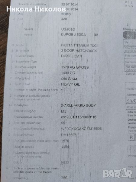 Продавам двигател за Форд Фиеста / Ford Fiesta 1.5 TDCI 2014г. 75к.с., 55kw, Тип на мотора UGJC - 1300лв.