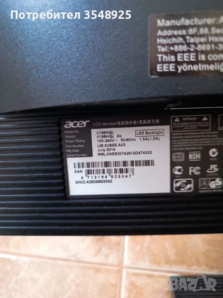 Монитор ACER V196HQL Ab, снимка 1 - Монитори - 45974695 Монитор ACER V196HQL Ab, снимка 2 - Монитори - 45974695 Монитор ACER V196HQL Ab, снимка 3 - Монитори - 45974695 Монитор ACER V196HQL Ab, снимка 4 - Монитори - 45974695 Монитор ACER V196HQL Ab, снимка 5 - Монитори - 45974695 Монитор ACER V196HQL Ab, снимка 6 - Монитори - 45974695 Монитор ACER V196HQL Ab, снимка 7 - Монитори - 45974695 Монитор ACER V196HQL Ab, снимка 8 - Монитори - 45974695 Монитор ACER V196HQL Ab, снимка 9 - Монитори - 45974695 Монитор ACER V196HQL Ab, снимка 10 - Монитори - 45974695 1/10