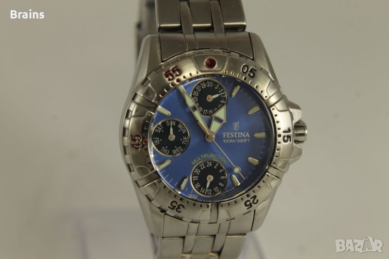 Дамски часовник FESTINA F16060 Multifunction. Изцяло изработен от неръждаема стомана. Циферблата и стрелките са в перфектно състояние. Стъкло без драскотини. Оригинална стоманена верига FESTINA. Кварцов механизъм. Всички функции работят, работи точно.