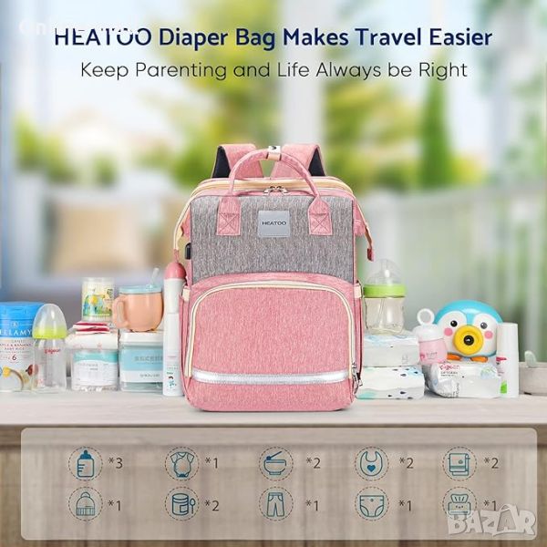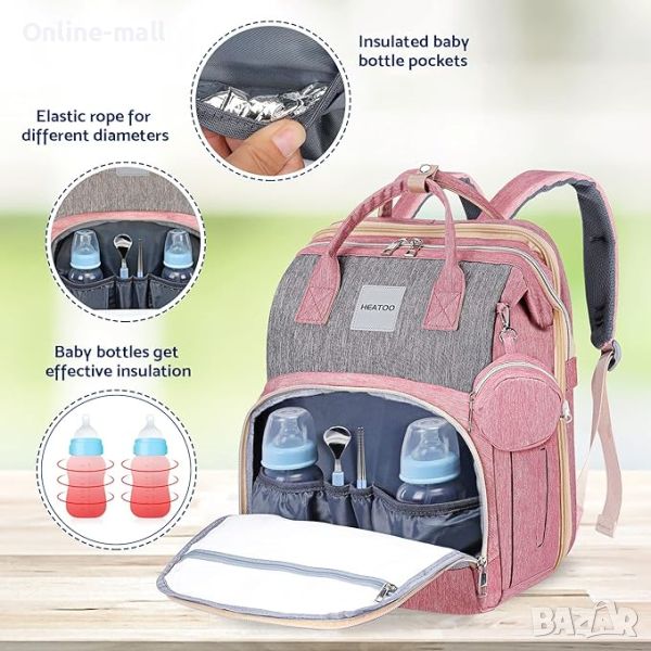 Търсенето на хитро проектирана бебешка чанта приключва до тук! Опаковайте всички детски неща в организирани отделения или разгънете чантата в преносима бебешка кошара. Материал: полиестер