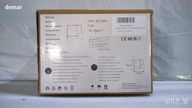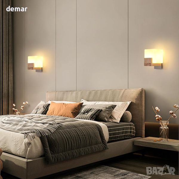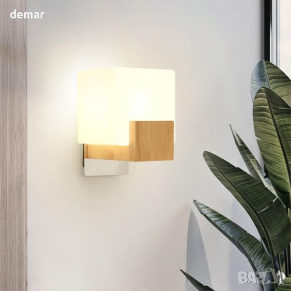Модерна вътрешна LED стенна лампа с 1 x G9 крушка, квадратна дървена със стъклен абажур