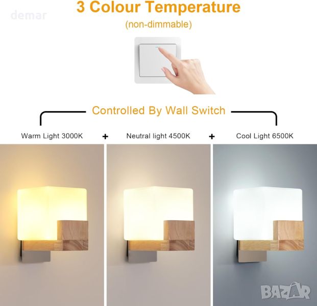 Тази дървена стенна лампа се отличава с винтидж модерен дизайн с естествено дърво и стъклен абажур, предлагащ издръжливост и елегантен външен вид, който създава ярък светлинен ефект и топла артистична атмосфера. Включва крушка G9 с три цветни температури: студено бяло, топло бяло и неутрално бяло, които могат да се регулират според вашето настроение, сезон или повод. Изработена от масивно дърво и висококачествен плексиглас, лампата се отличава с чиста дървесна текстура, висока пропускливост на светлина и устойчивост на деформация, напукване и молци. Здравата, устойчива на износване метална основа гарантира издръжливост и безопасност. Лесна за инсталиране с включени аксесоари за монтаж и инструкции, тази стенна лампа е идеална за всекидневни, спални, офиси, коридори, стълбища и други пространства, като добавя модерен осветителен елемент и декорация.