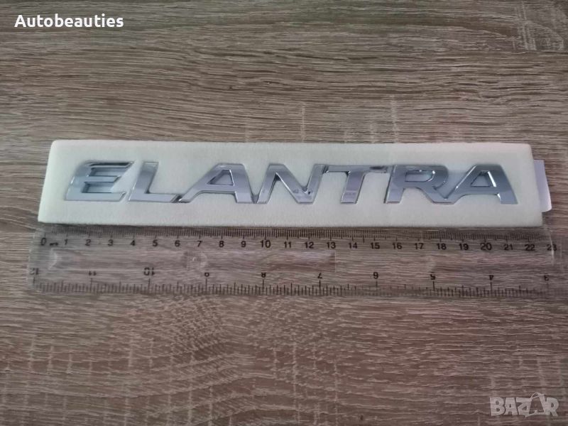 Нов надпис за модела Elantra на Хюндай в сребристо. Размерите са дадени на снимките.