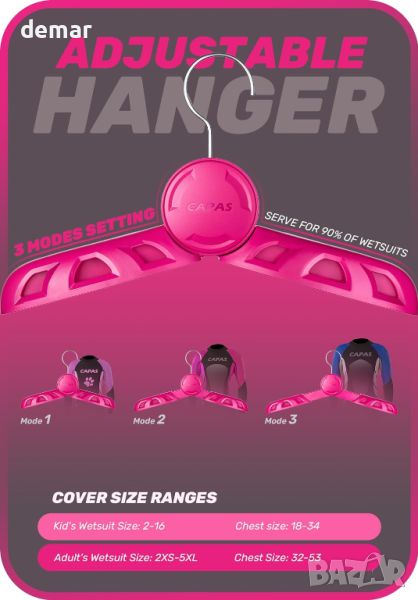 Закачалката за неопренов костюм CAPAS с широки рамене е предназначена за оптимално сушене и грижа за неопренови костюми и други големи дрехи. Изработен от издръжлив PC материал, той може да издържи до 33 lbs, като гарантира, че няма да се срути под тежестта. Функцията за регулиране на дължината му позволява да пасне на повечето размери неопренов костюм за възрастни и деца, предотвратявайки деформация на раменете. Неговите бързо сгъваеми рамена го правят лесен за съхранение и пренасяне, идеален за пътувания. Рамената на закачалката имитират извивката на човешките рамене, предпазвайки неопреновия ви костюм от повреда и удължавайки живота му.