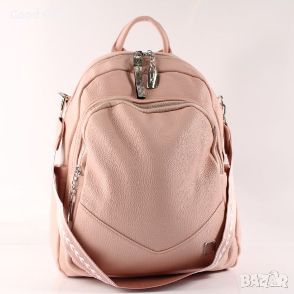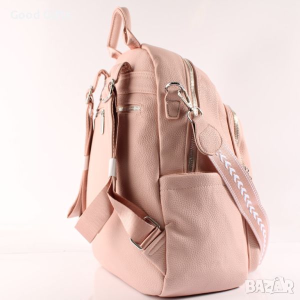 Дамска кожена раница с голям преден джоб, Пепел от рози