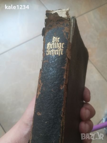 Стара Библия на немски език от 1923г. Мартин Лутер. Одобрена от комитета на германската евангелска църква. Стар, Нов завет и Псалми. Съдържа 1350 страници. Размери - дължина 16,5см, ширина 10,5см, дебелина 3см. Корицата на гърба е захабена, книжното тяло е в добро състояние. Цена 80лв.