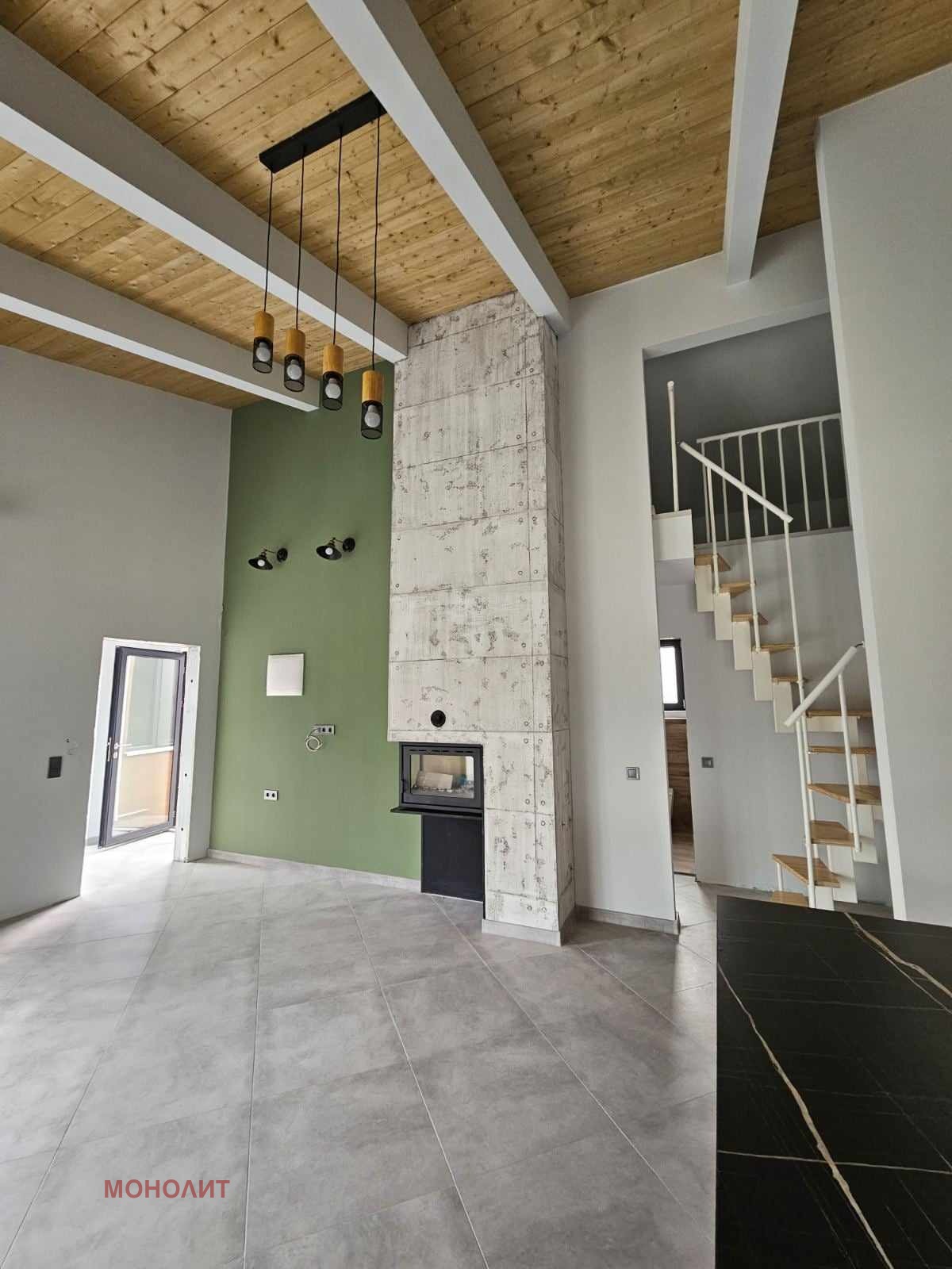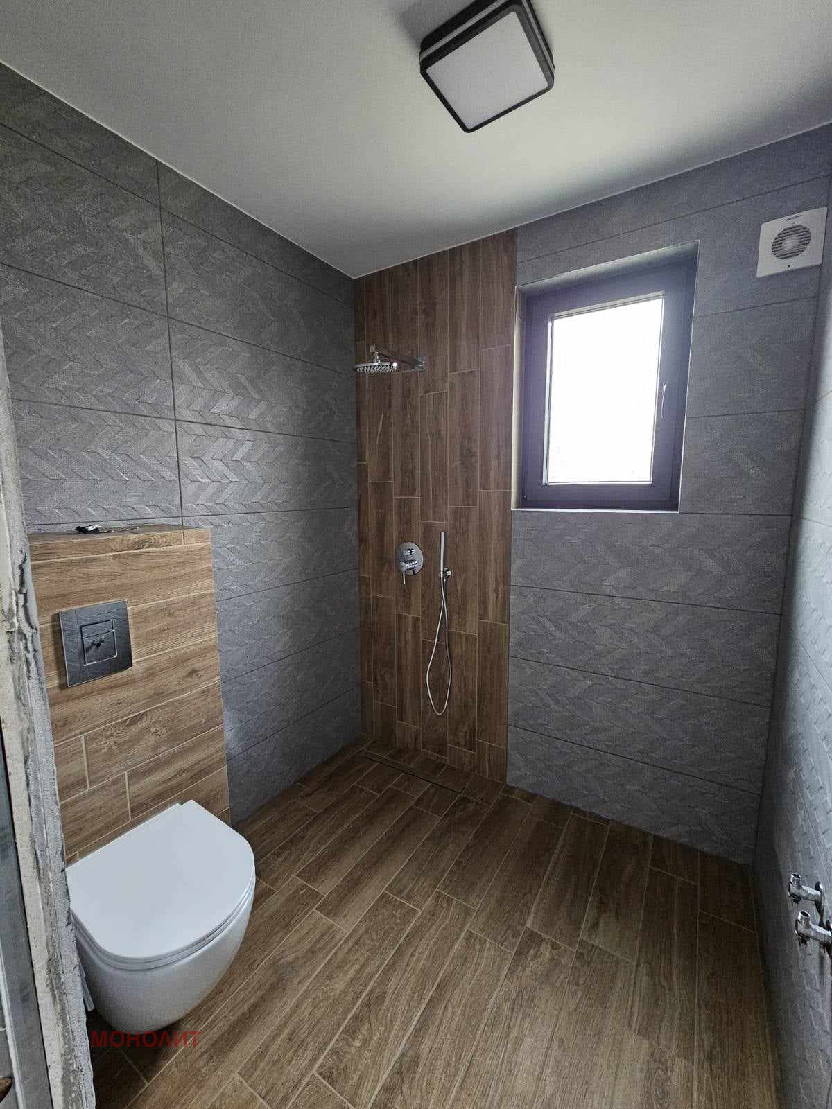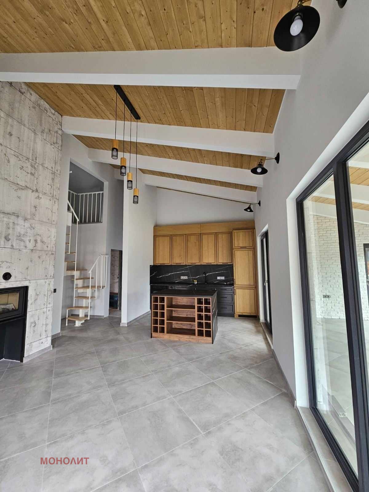 Масивна жилищна сграда - стоманена конструкция върху стоманобетонова основа, двускатен покрив с керемиди с паро- и топлоизолация от каменна вата. Външните стени са със стоманена конструкция и са изградени по система за сухо строителство KNAUF W333 с изолация от каменна вата. Вътрешните стени са гипсокартон. Хидро- и пароизолации на подземните части на сградата и на покрива. Състои от еднопространствена дневна ( с кухненски кът, трапезария и зона за отдих), три спални със сервизни помещения, гардеробна към тях и килер и перално помещение. Напълно завършена, с изградено подово отопление, оборудвани кухня и сервизни помещения. Дворното място е 600 кв.м.