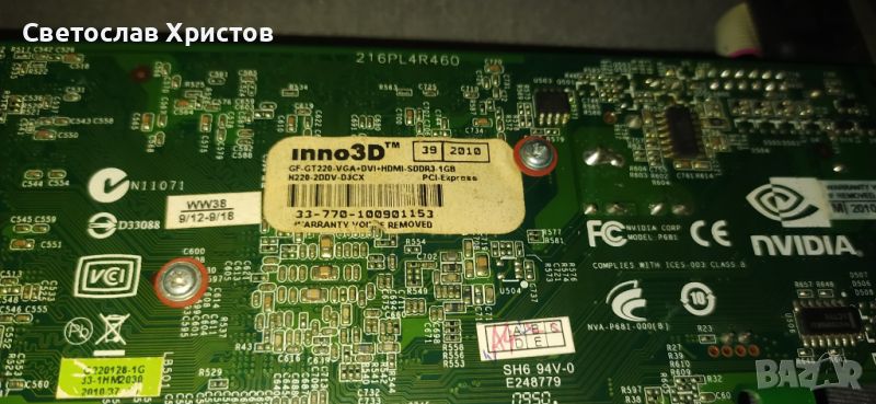 Продавам видео карта Inno3D GT220 1GB DDR3 128bit VGA DVI HDMI LP PCI-E → Обява 45980264