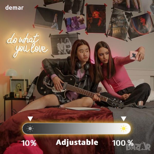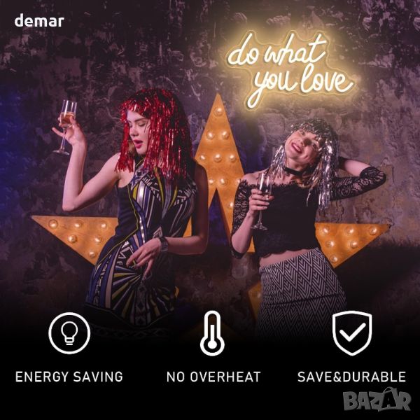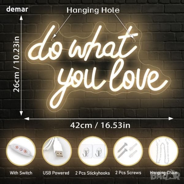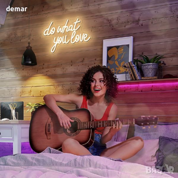 Неонов светлинен надпис Do What You Love за декорация, USB захранване, димируем, топло бяло