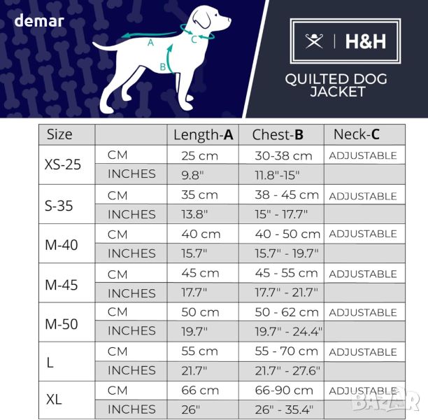Hugo & Hudson представя зашеметяващо ватирано яке за кучета. Това яке е съвместимо както с яки, така и с колани, включващо отвори за лесен достъп близо до врата и надолу по гърба. Може да се похвали с вътрешна подплата от полар, метални маркови нитове, лазерно гравирана катарама и яка от рипсено кадифе за стилен външен вид. Предлага се в два отличителни цвята и седем размера, осигуряващи идеално прилягане (моля, вижте ръководството за размери, преди да купите). Това сътрудничество предлага набор от продукти, вдъхновени от стила Hackett, предназначени за най-добрия приятел на човека.