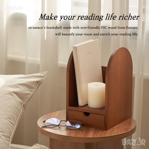 bookrest е екологичен продукт, произведен от FSC-сертифицирана дървесина, с опаковъчни материали, включително хартия от захарна тръстика, мастило от соево масло и крафт хартия буфер. Тази луксозна, екологична поставка за книги служи като табло за бележки 3 в 1, чекмедже и рафт за книги, побиращи 6-7 книги. Отличава се със стабилна основа (16*13,8 см) и дизайн със заоблени ръбове за безопасност. Универсален за различни настройки като кухни, класни стаи, офиси и всекидневни, той е подходящ както за възрастни, така и за деца. Готов за употреба направо след изваждане от кутията, не изисква инсталация, което го прави идеален избор за подарък.
