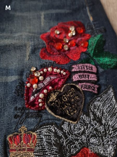 НОВИ жестоки дамски дънки LOVE с бродерия и камъни на намаление → Обява 45981085